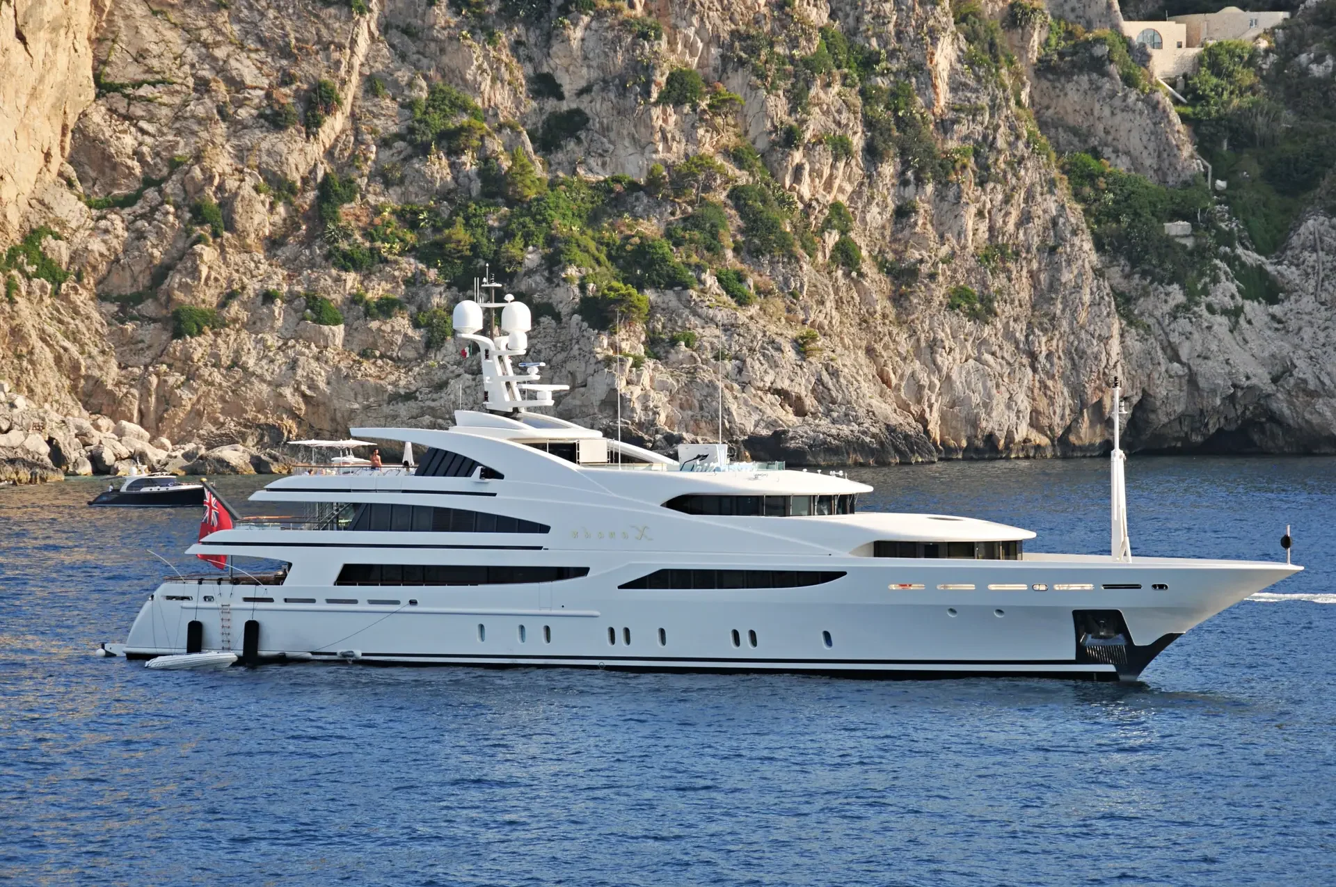 The yacht accommodates up to 12 guests across six generously proportioned cabins, including a full-beam master suite and a VIP cabin, and carries a crew of 14. Her first refit was completed in 2012.