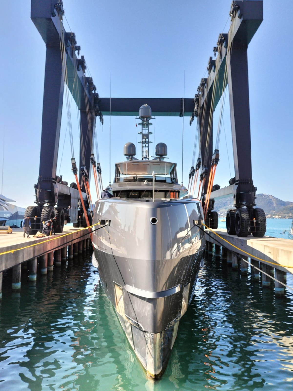 At NCA Refit, during 2022–2023, M/Y Toute Sweet underwent standard hull activities, including the servicing of the stabilising fins and associated pumps.