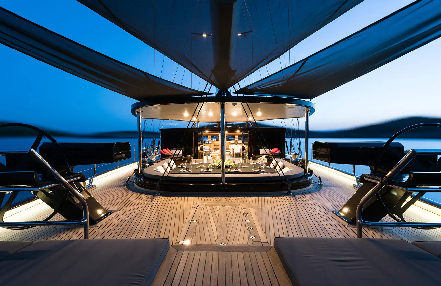 Removal and sandblasting of the cap rail. Painting of two booms. Removal and reinstallation of the bowsprit, including application of Chockfast on the bowsprit area and aft bollards. Sandblasting and complete painting of the chain locker.